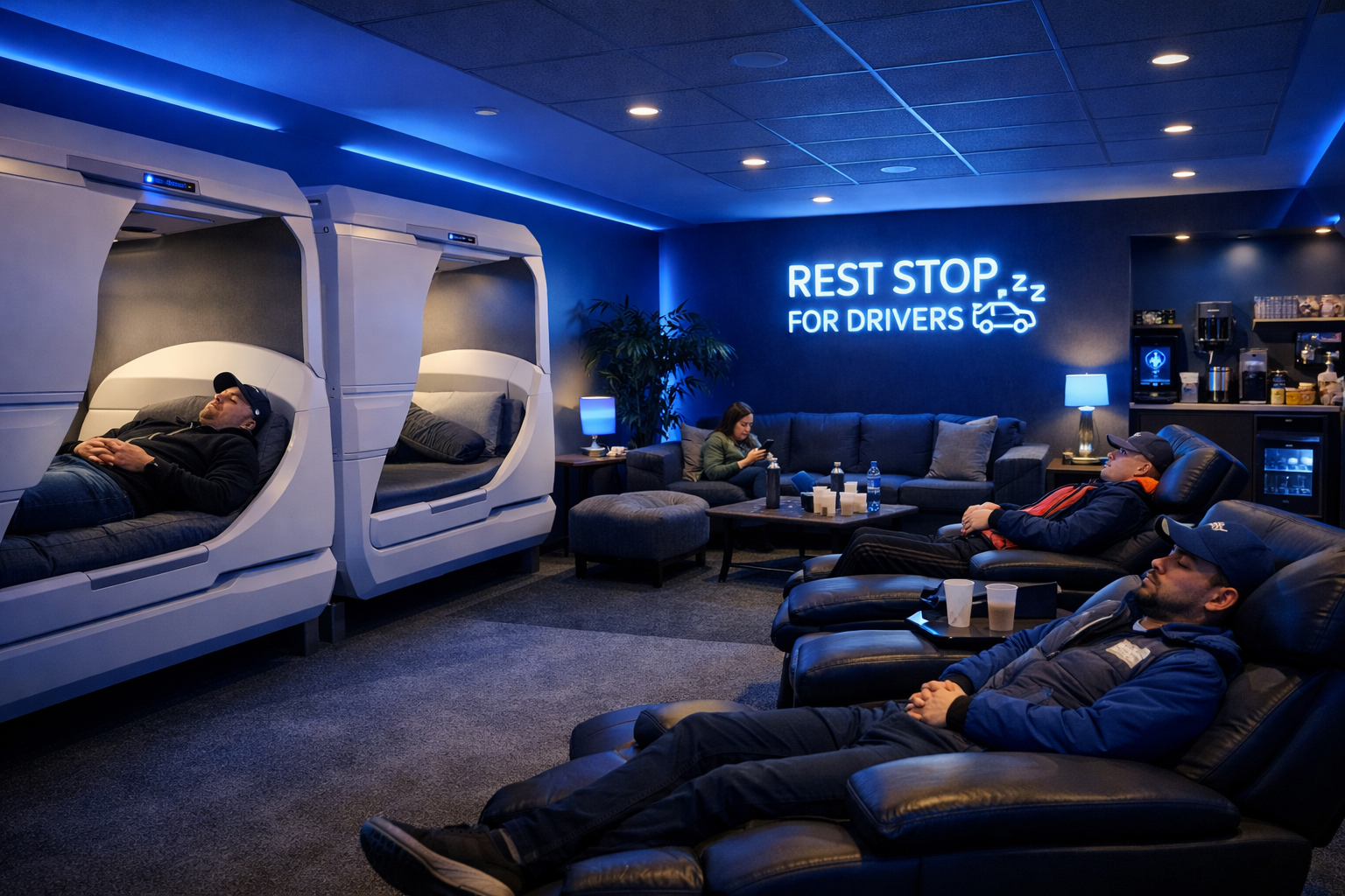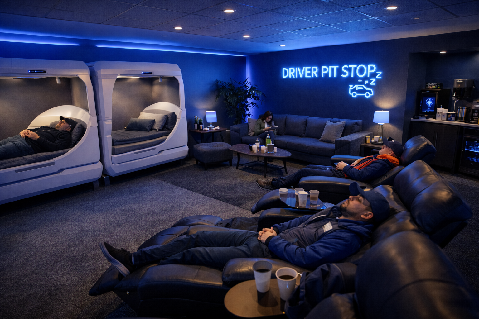 The Driver Pit-Stop gives a clean, secure place to nap, relax, and recharge - all priced for drivers.